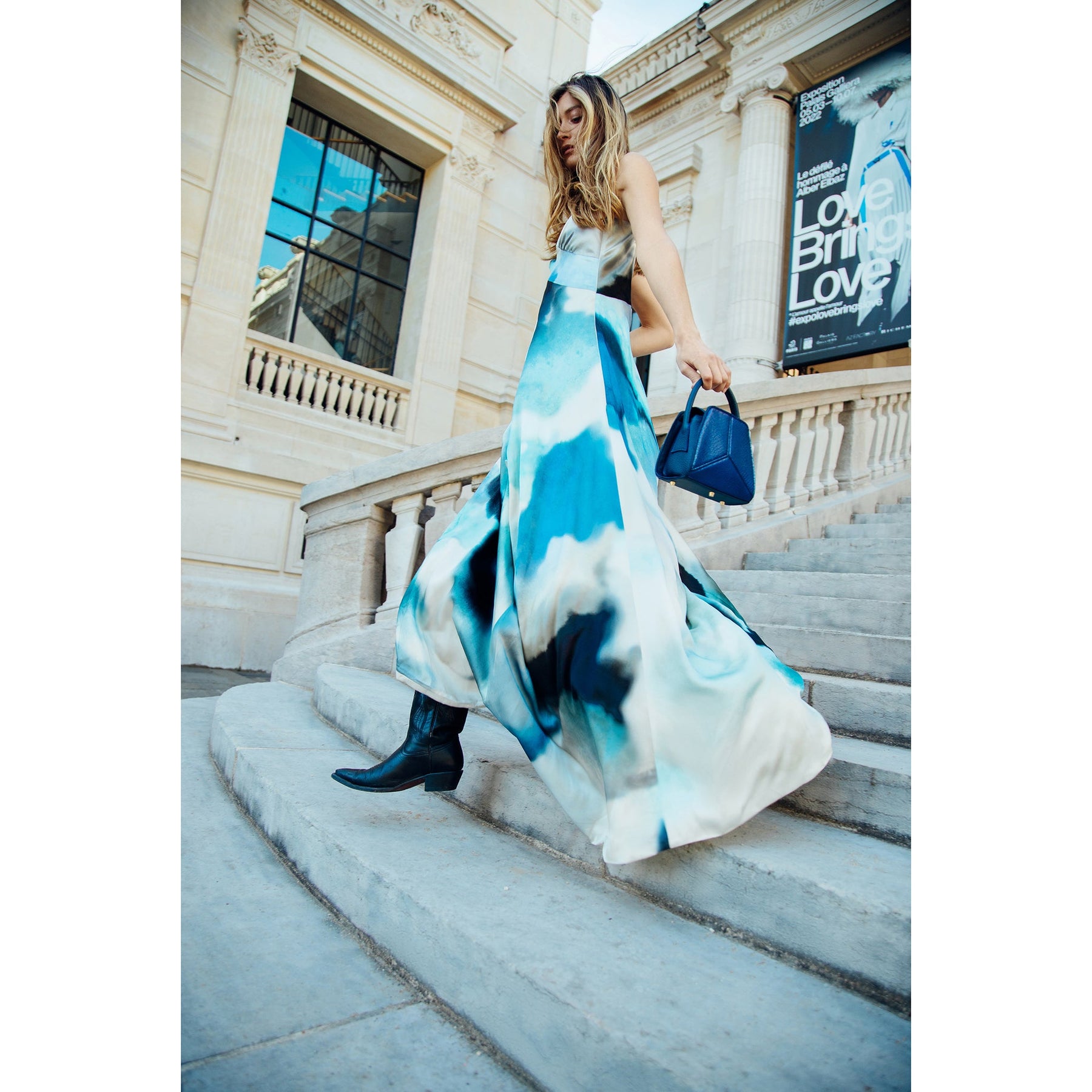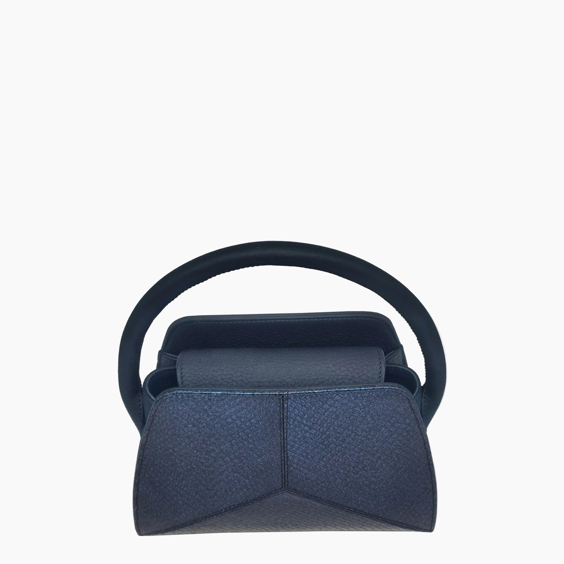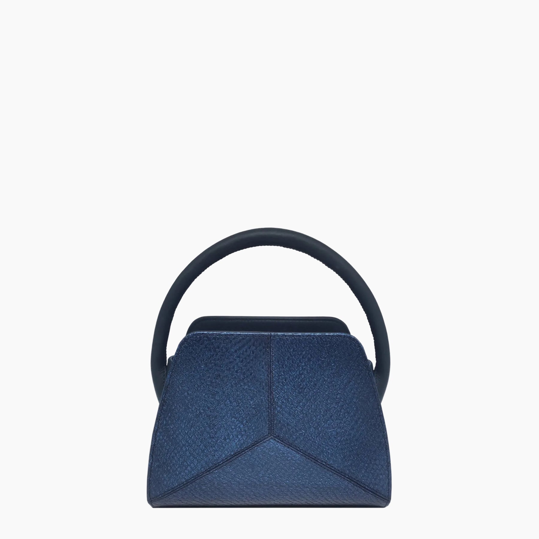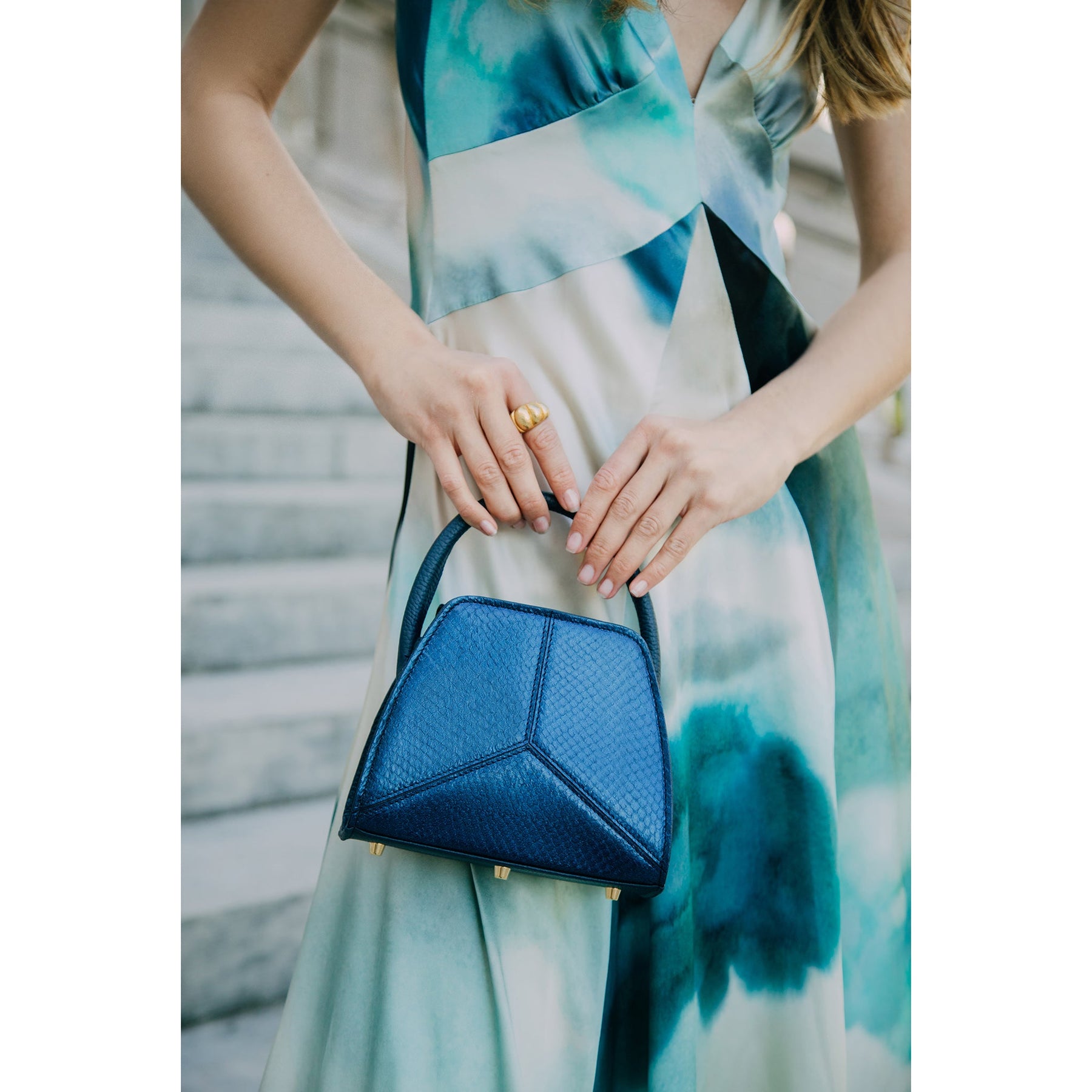 The Cleo Top Handle in Tanzanite Blue is a statement piece that combines bold color with sustainable luxury. Crafted in France, this luxury crossbody bag is made from premium bull leather and ICTYOS Squama Luxe recycled salmon leather. Its signature triangular patch design adds a unique touch, while the removable gourmet chain strap offers versatility for every occasion. Compact, stylish, and eco-conscious, the Cleo in Tanzanite Blue is perfect for modern women who value ethical fashion. Designed in France with an emphasis on both style and sustainability.