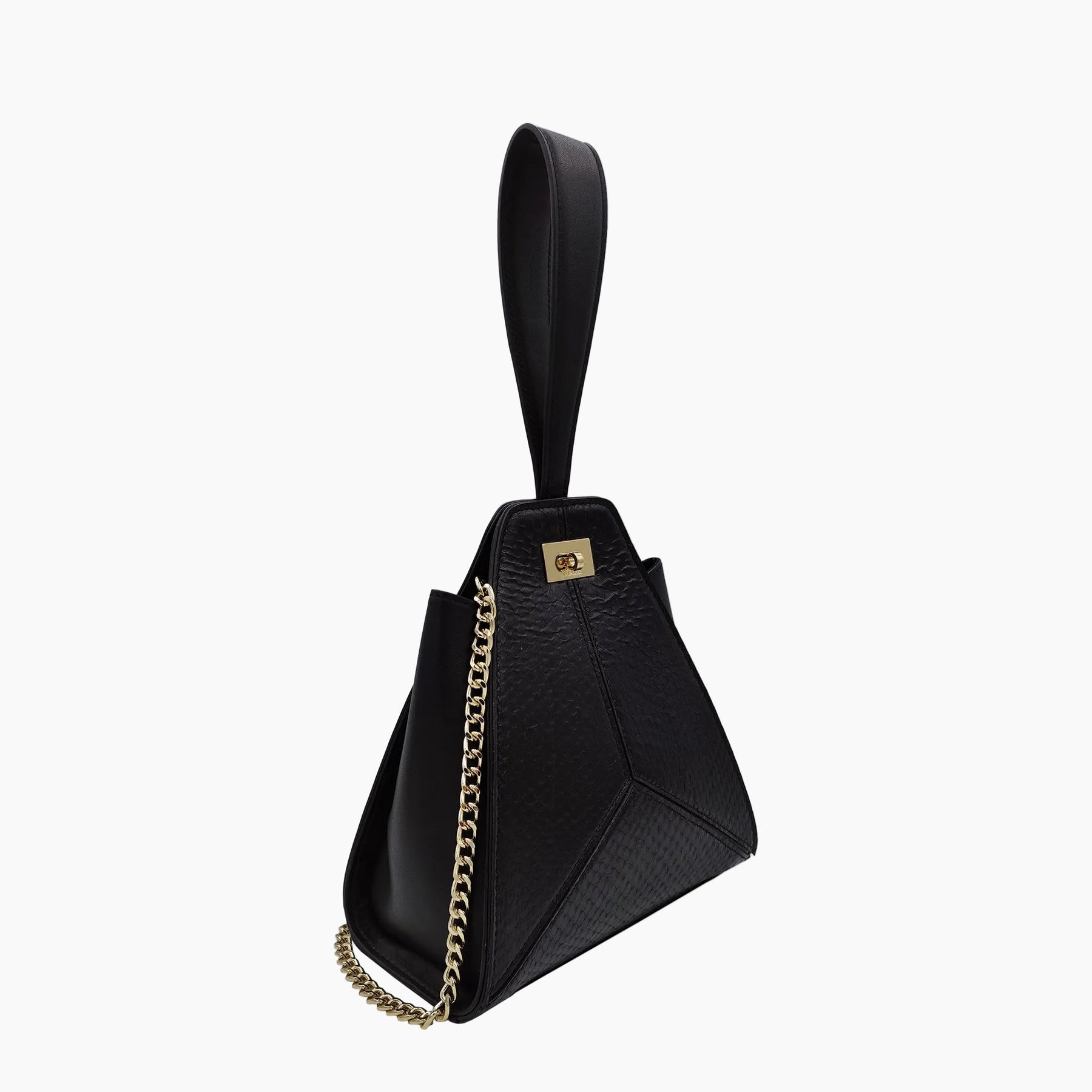 The Livia Black Wristlet is a perfect balance of elegance and sustainability. Handcrafted in France from ICTYOS Squama Luxe, an innovative leather made from recycled salmon skins, this wristlet features a striking triangular patchwork design. With the ability to be worn as both a wristlet and a crossbody bag, it’s versatile and eco-conscious. Sustainably sourced French calf leather and a luxurious microfiber lining further elevate this bag as a true example of ethical fashion and French luxury.