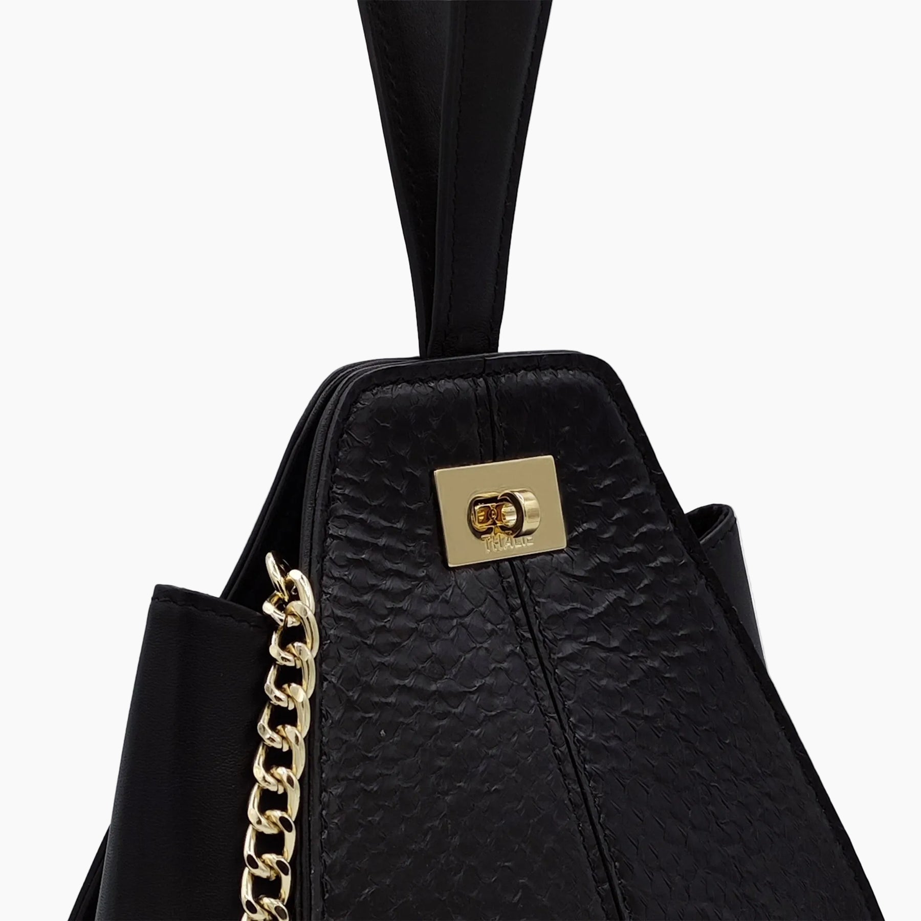 • Removable light gold gourmet chain strap for crossbody wear