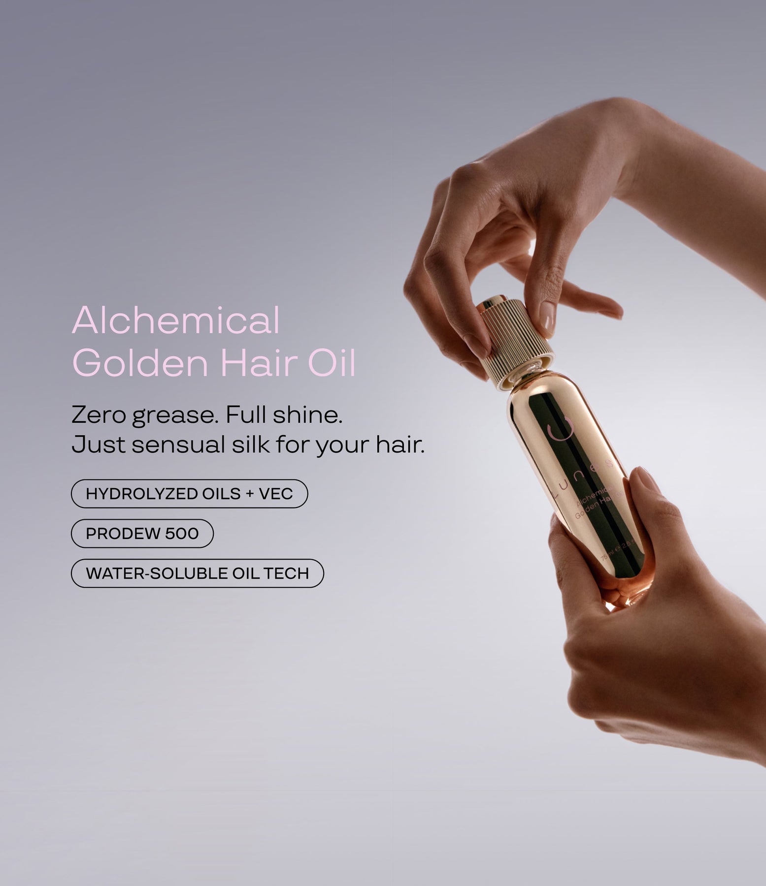 Alchemical Golden Hair Oil is an exquisite blend designed to nourish and protect your hair deeply. It leaves it smooth, radiant, and invitingly touchable. Packed with Phyto Squalane, Jojoba Oil, and Argan Oil, this oil penetrates deeply to hydrate, repair, and shield your hair from pollution, environmental stressors and heat damage. Our hair repair oil is the ultimate finishing touch to any haircare ritual, ensuring your hair remains soft, silky, and full of vitality. Suitable for all hair types. The fatty part was removed from it while preserving its valuable properties. So you can use it without worrying about your head getting dirty.