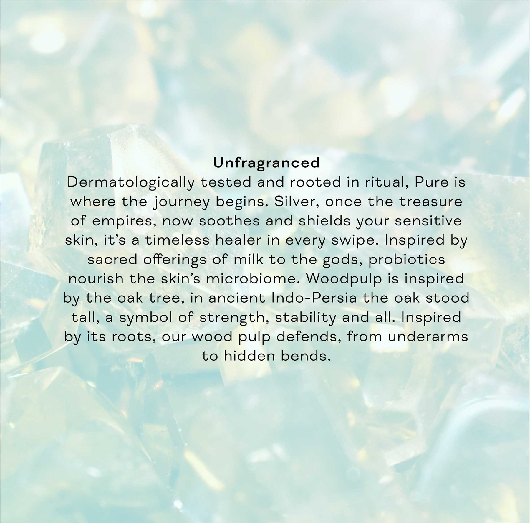 A body deodorant bar crafted for even the most sensitive skin: powered by silver, honeysuckle, probiotics, and woodpulp to soothe, balance, and absorb sweat while letting your skin breathe. No blocks, no buildup, just pure freshness. Aluminium Free. Paraben Free. Phthalate Free