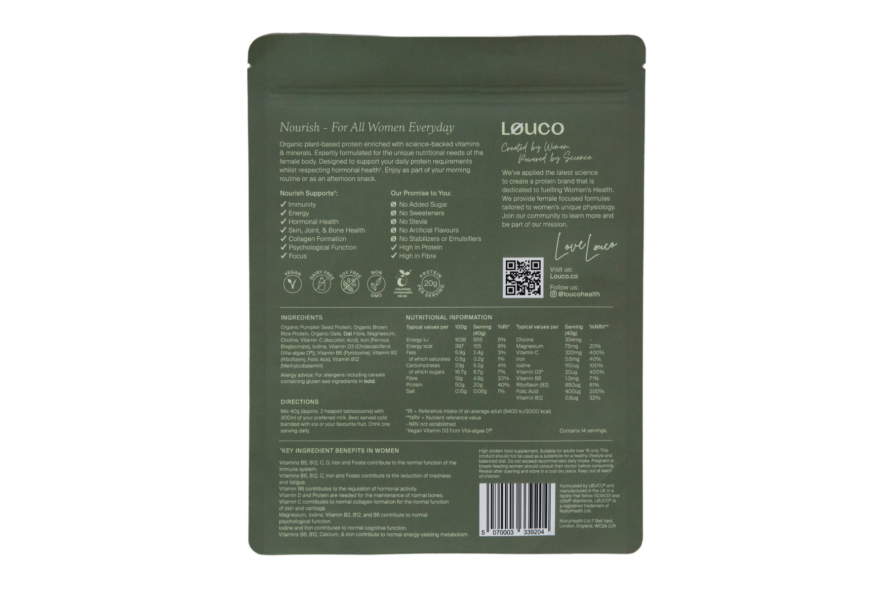 Daily Plant-Based Protein: Packed with essential vitamins, minerals, and fibre to support women’s health every day with clean, science-backed nutrition.
