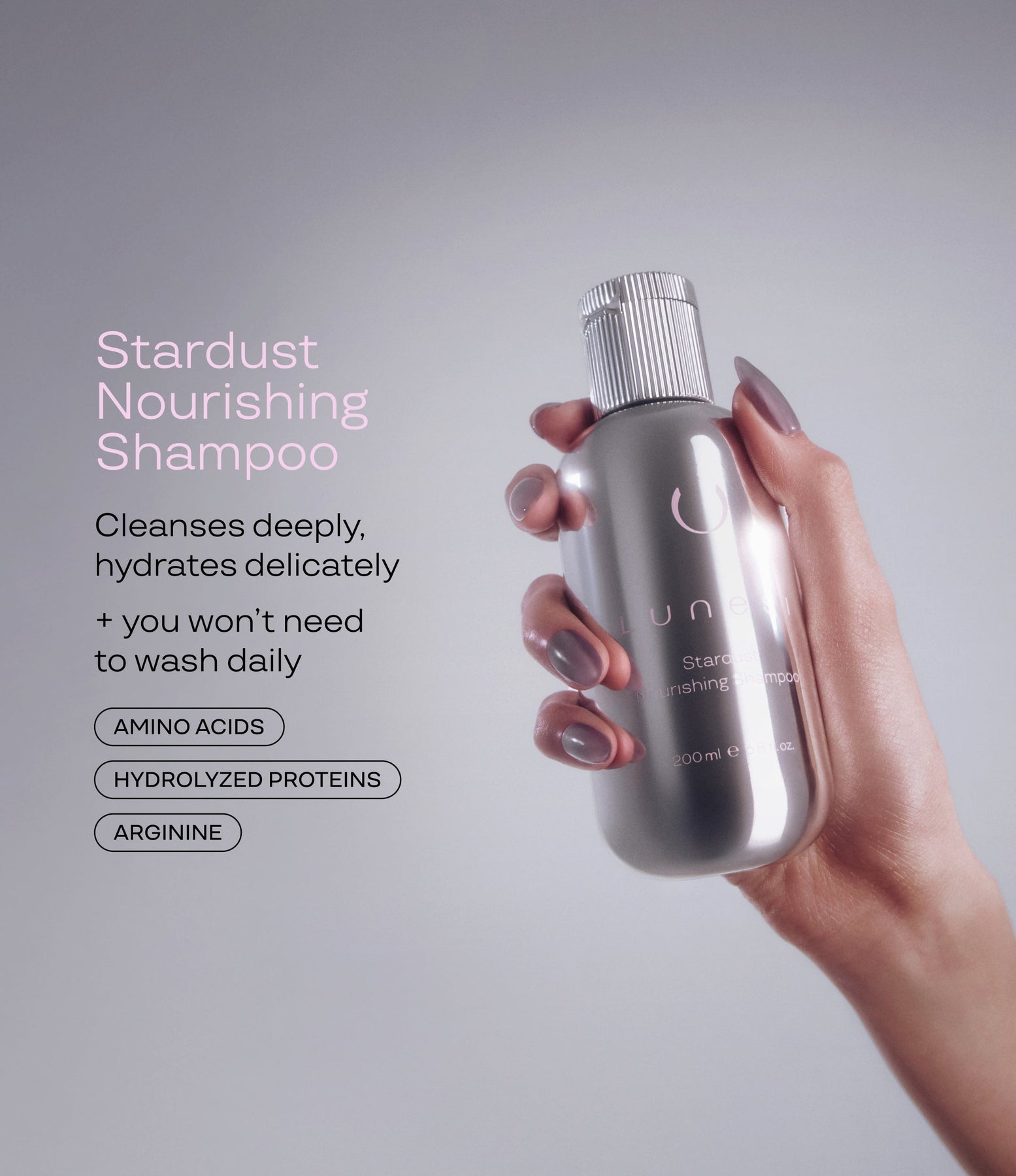 The first step in your Lunesi ritual. A deeply nourishing natural shampoo packed with TEQACTIVE (HaB)3 +C, Hydrolyzed Collagen, and a PRODEW® 500 amino acid complex to hydrate, restore, and protect your hair. This luxurious formula delivers intense moisture, strengthens the hair structure, and preserves the vibrancy of colour-treated hair. Gentle enough for daily use + suitable for all hair types.