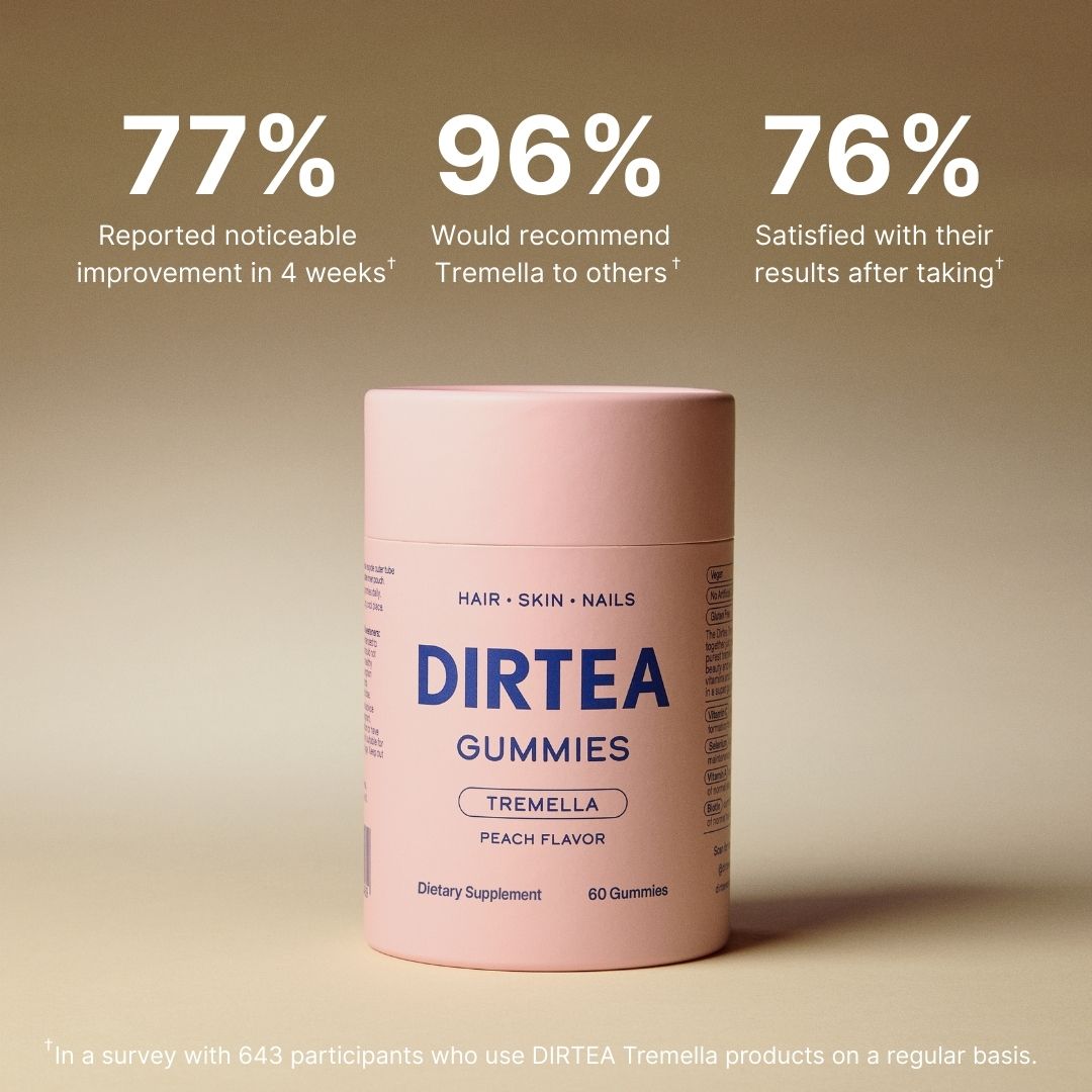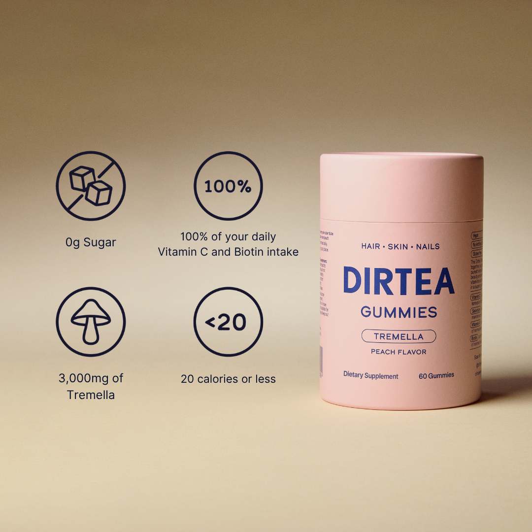 DIRTEA Tremella Gummies, with zero sugar and natural flavours, help you support healthy, hair skin and nails.