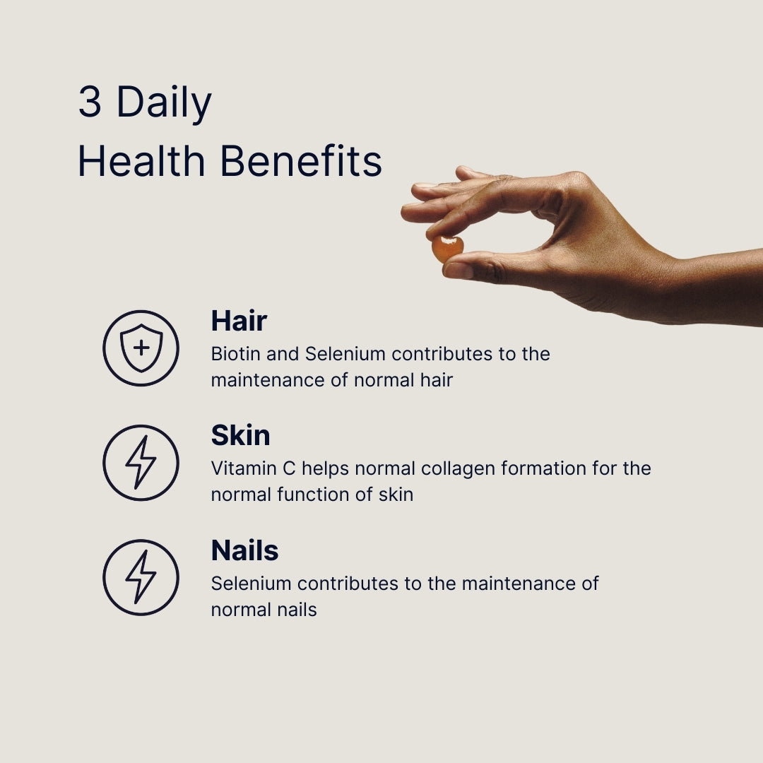 Packed with 3,000mg of Tremella and enriched with Biotin, Vitamin C, Selenium, Zinc, Vitamin A, and Vitamin E, these sweet peach-flavoured gummies offer a delicious, refreshing taste while supporting the natural synthesis of hyaluronic acid and collagen. Taken daily, they help nurture glowing skin, lustrous hair, and strong nails, giving you a radiant, healthy appearance.