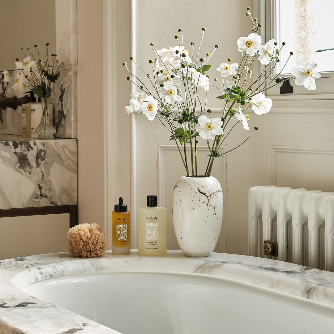 Indulge in the delicate elegance of Anemone with this luxurious bathing duo, a beautifully curated pairing of fragranced essentials.