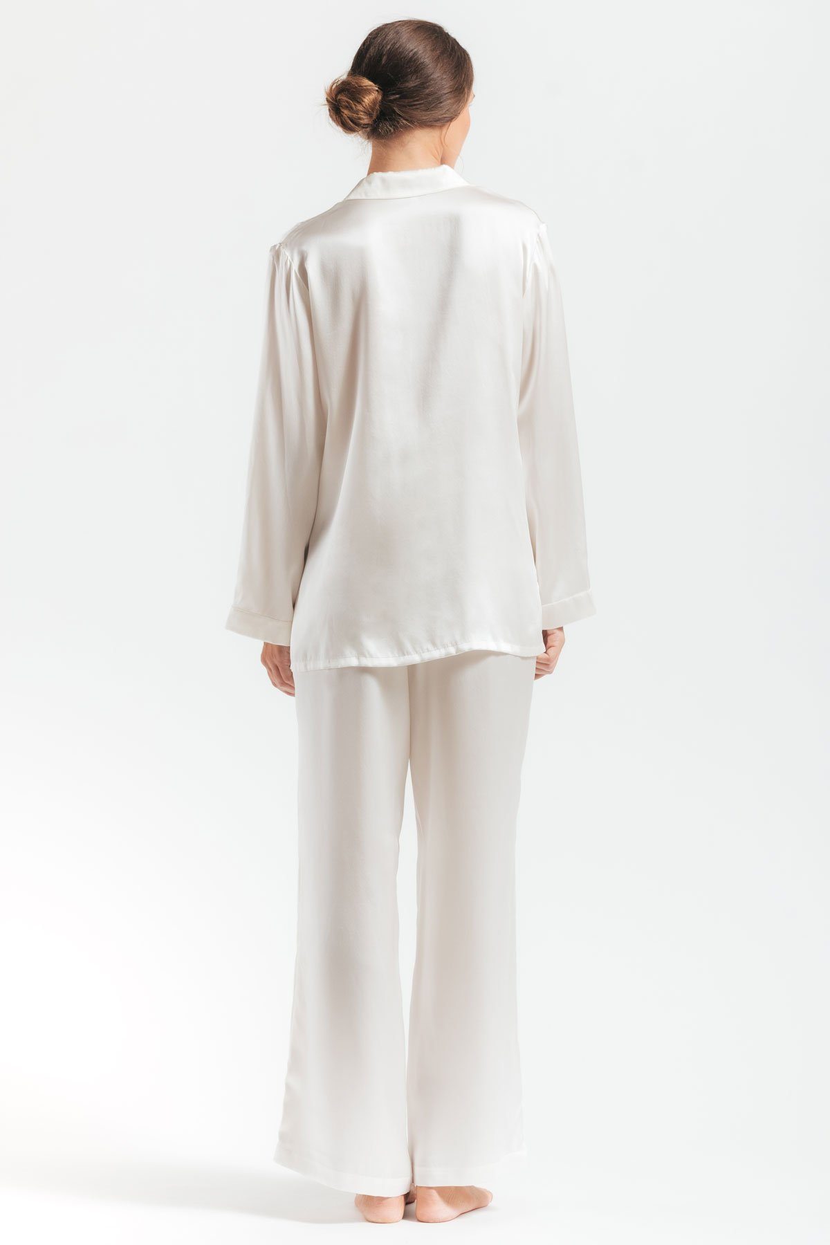 Back profile of Morgan womens silk pajama set in ivory