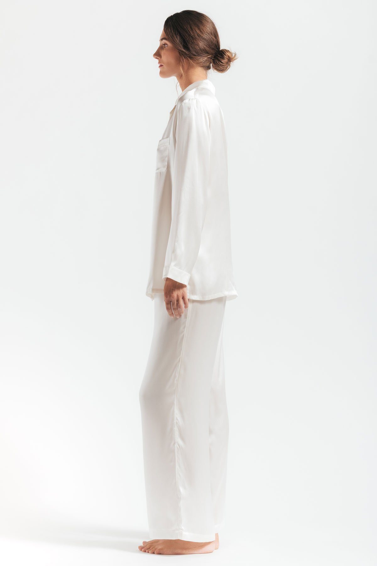 Side profile of Morgan womens silk pajama set in ivory