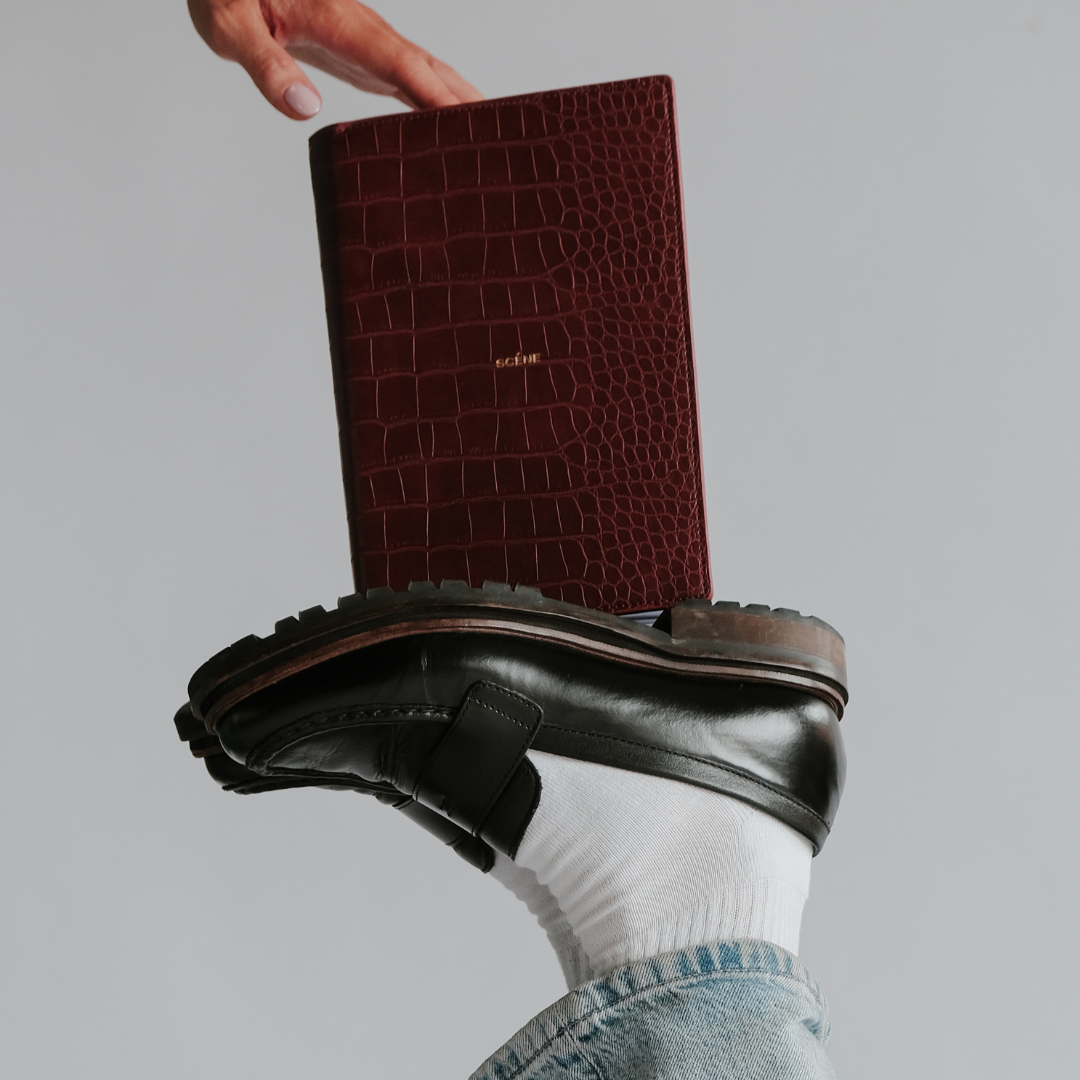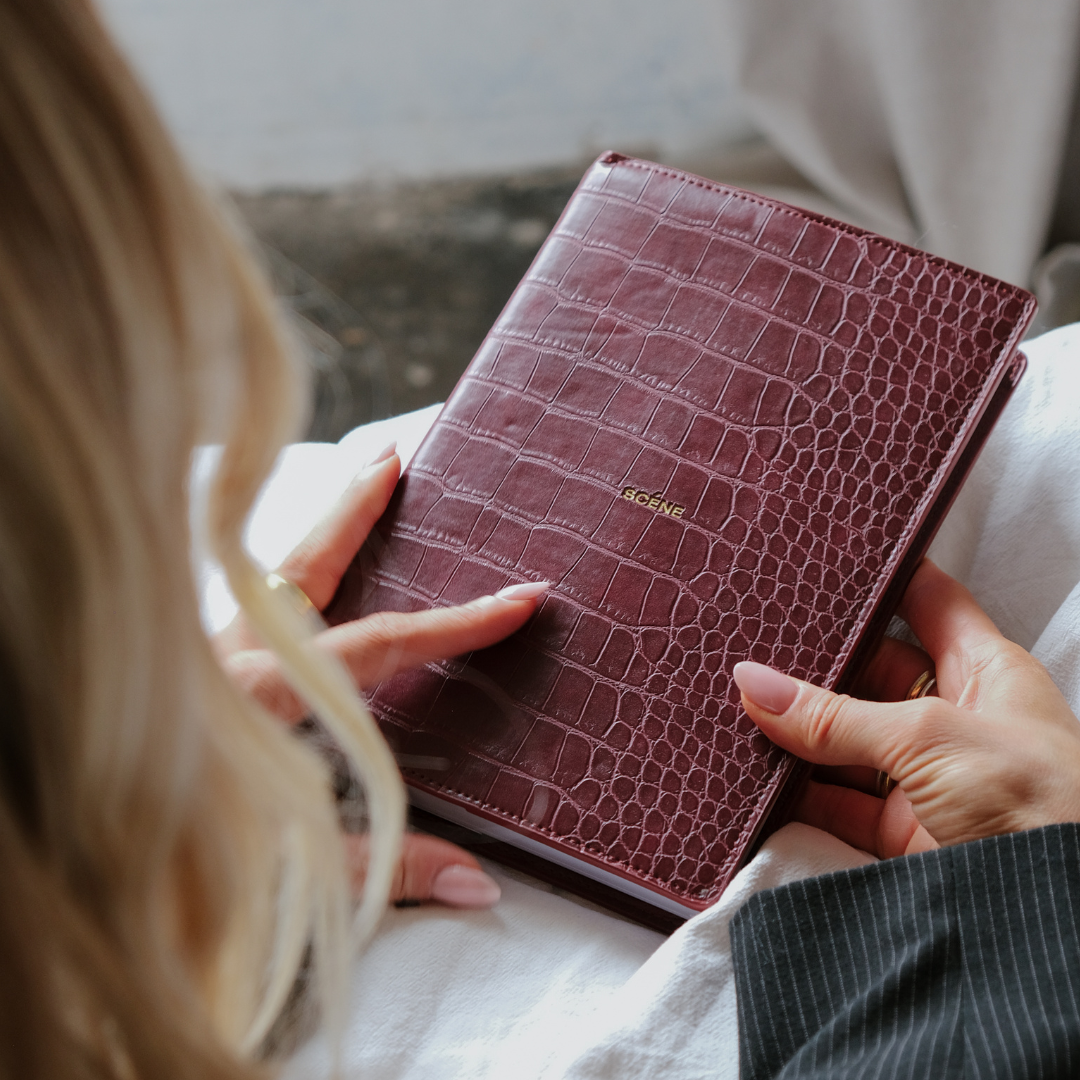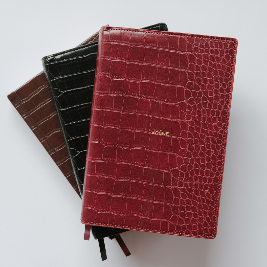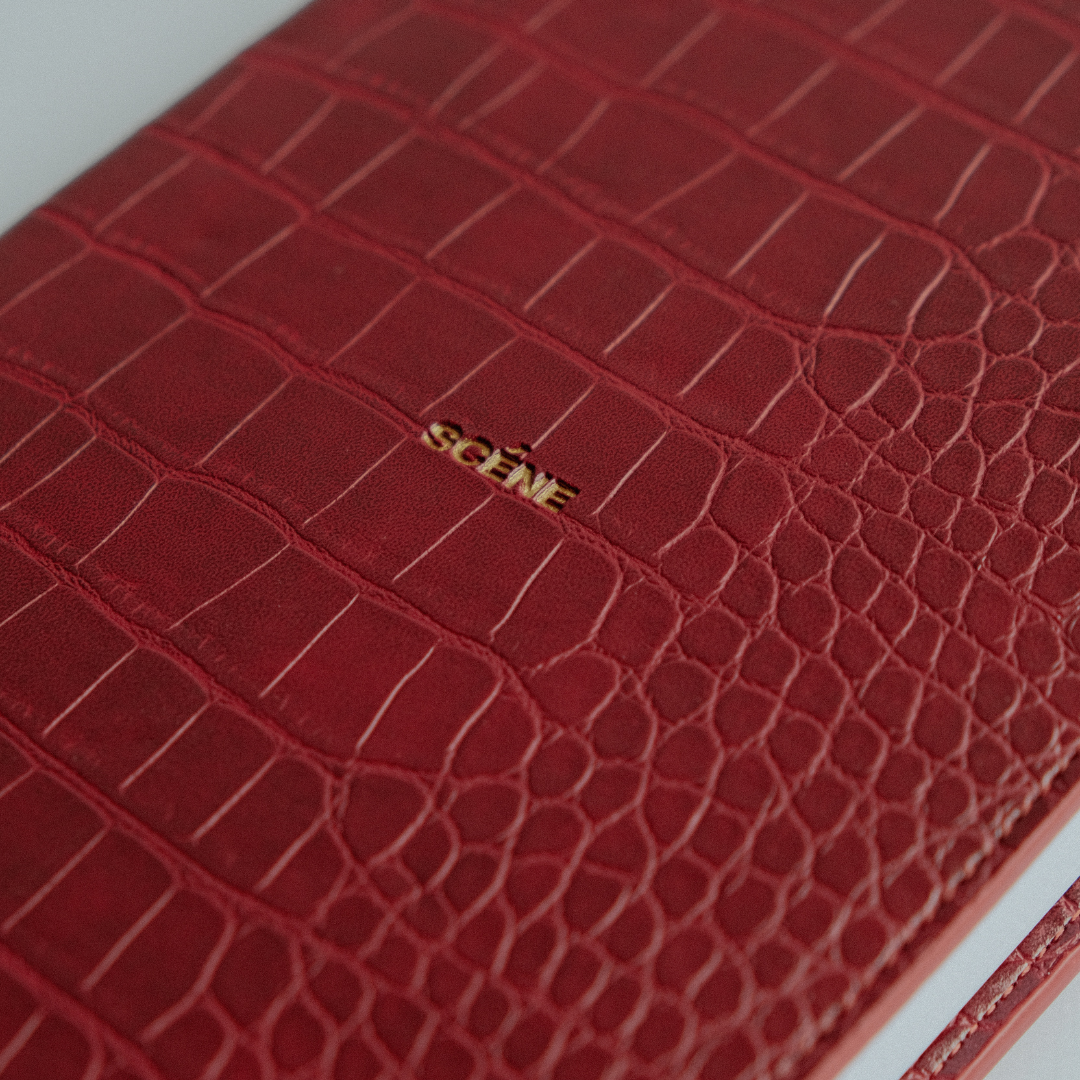 Introducing our A5  un-bound refillable productivity planner. Featuring a sleek deep red, croc leather inspired cover with a gold debossed Scéne logo at the centre.  Designed to keep you focused, organised, and on track, this planner will empower you to achieve all your potential.