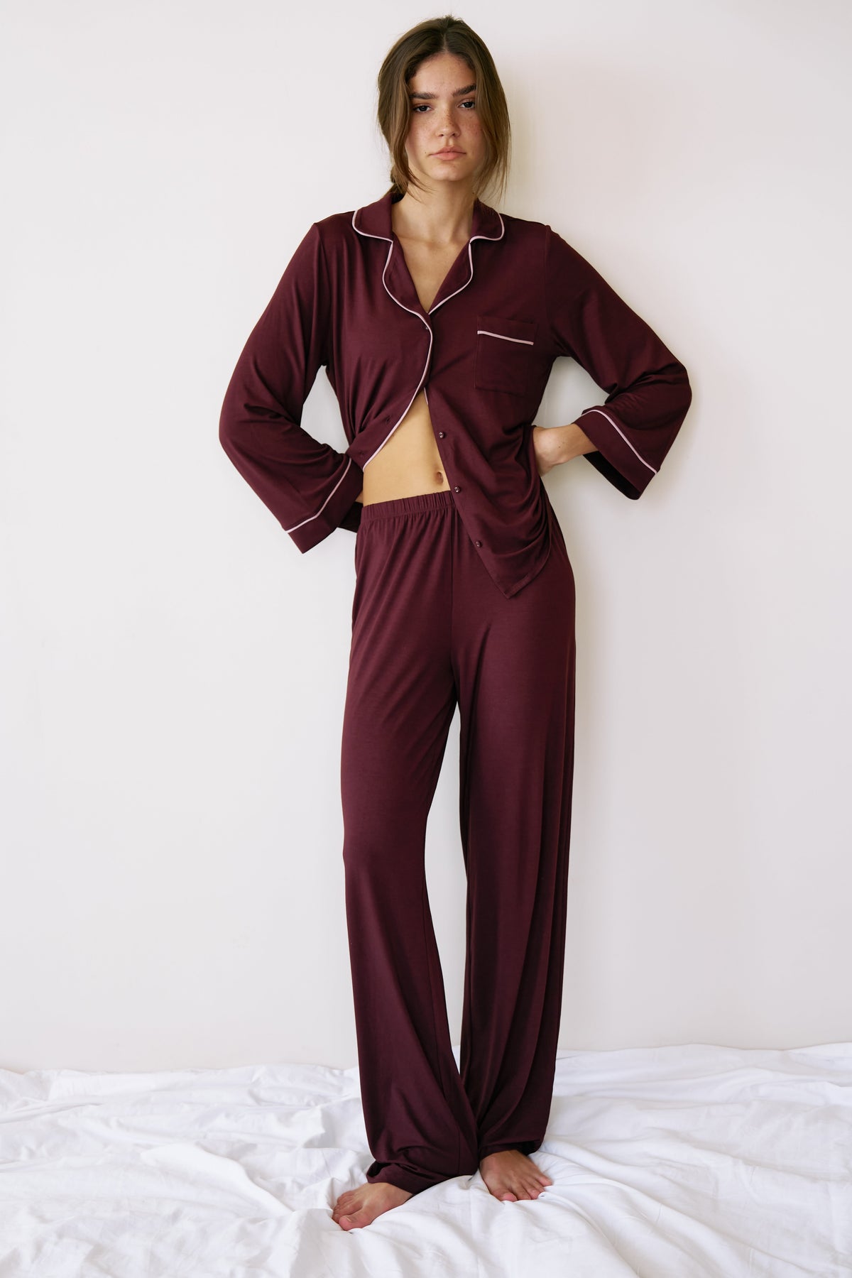 The Burgundy pyjama set brings depth and intensity to the collection - bold in colour, refined in feel.