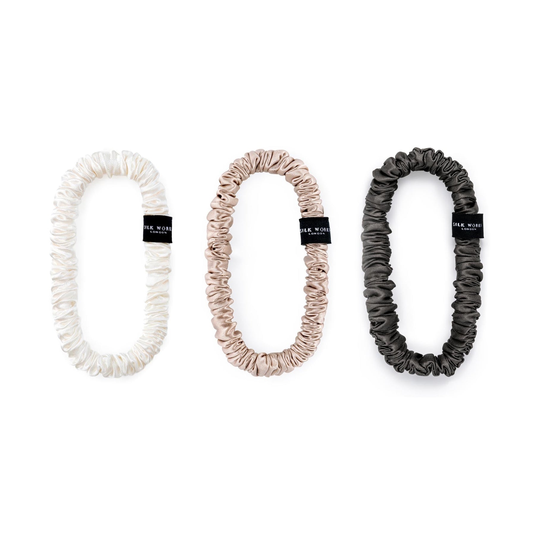 3 Silk Skinny Scrunchies - Neutrals